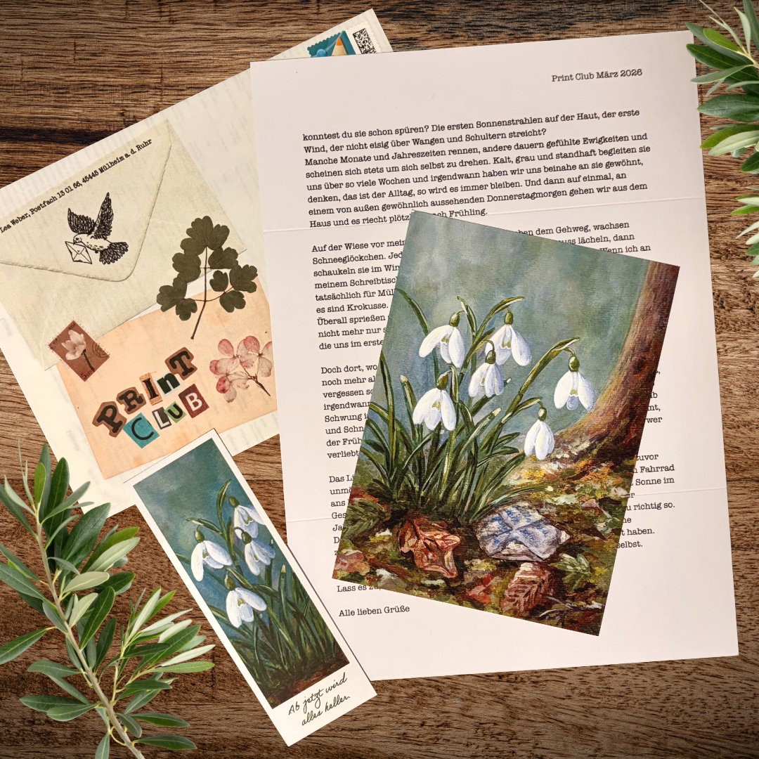 Print Club ist mein persönlicher Gegenentwurf zur Schnelllebigkeit unseres Alltags. Ein echter Brief im Briefkasten, ein kurzer Moment zum Innehalten – jeden Monat aufs Neue.